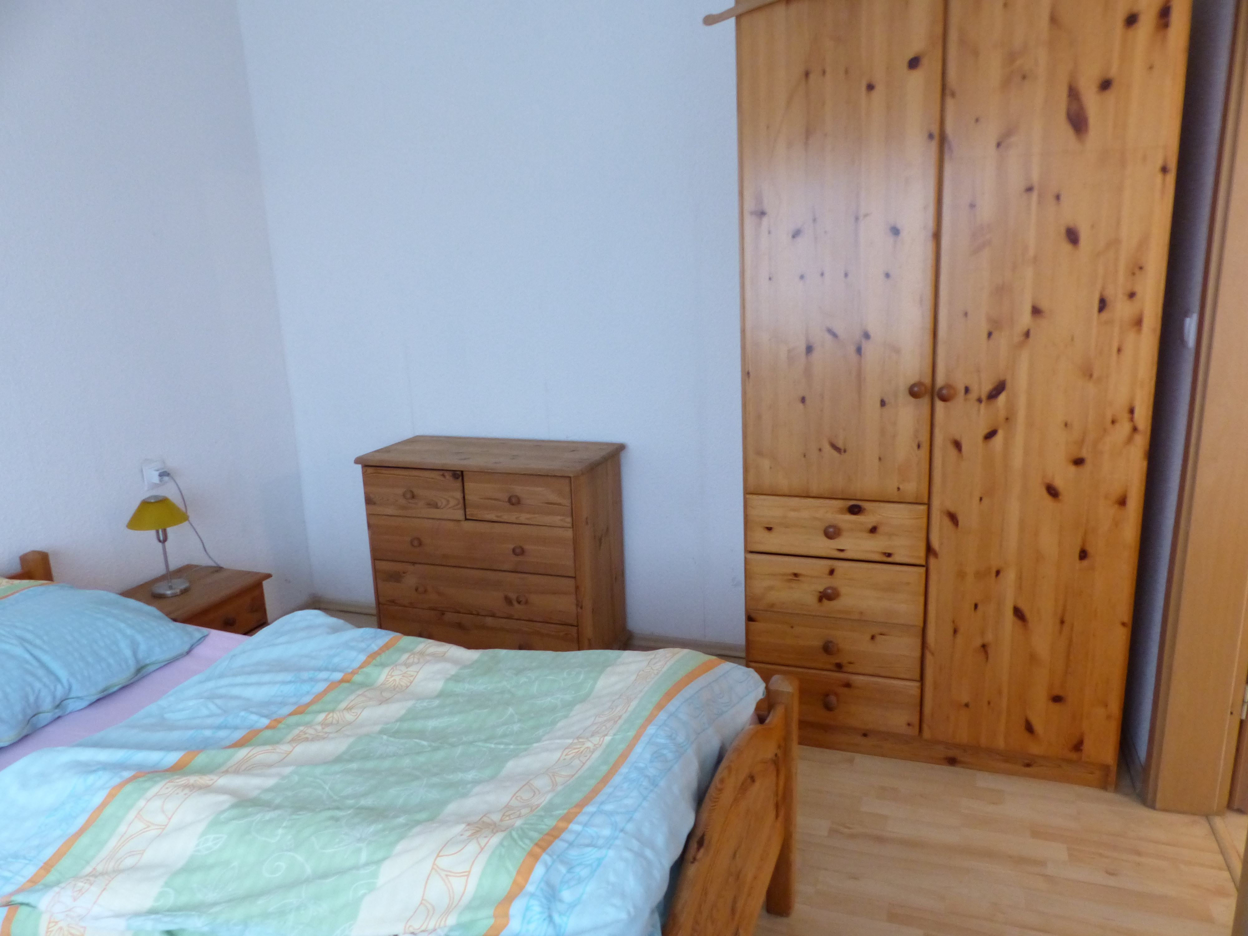 Schlafzimmern mit jeweils zwei Kiefernbetten. Des Weiteren befindet sich eine