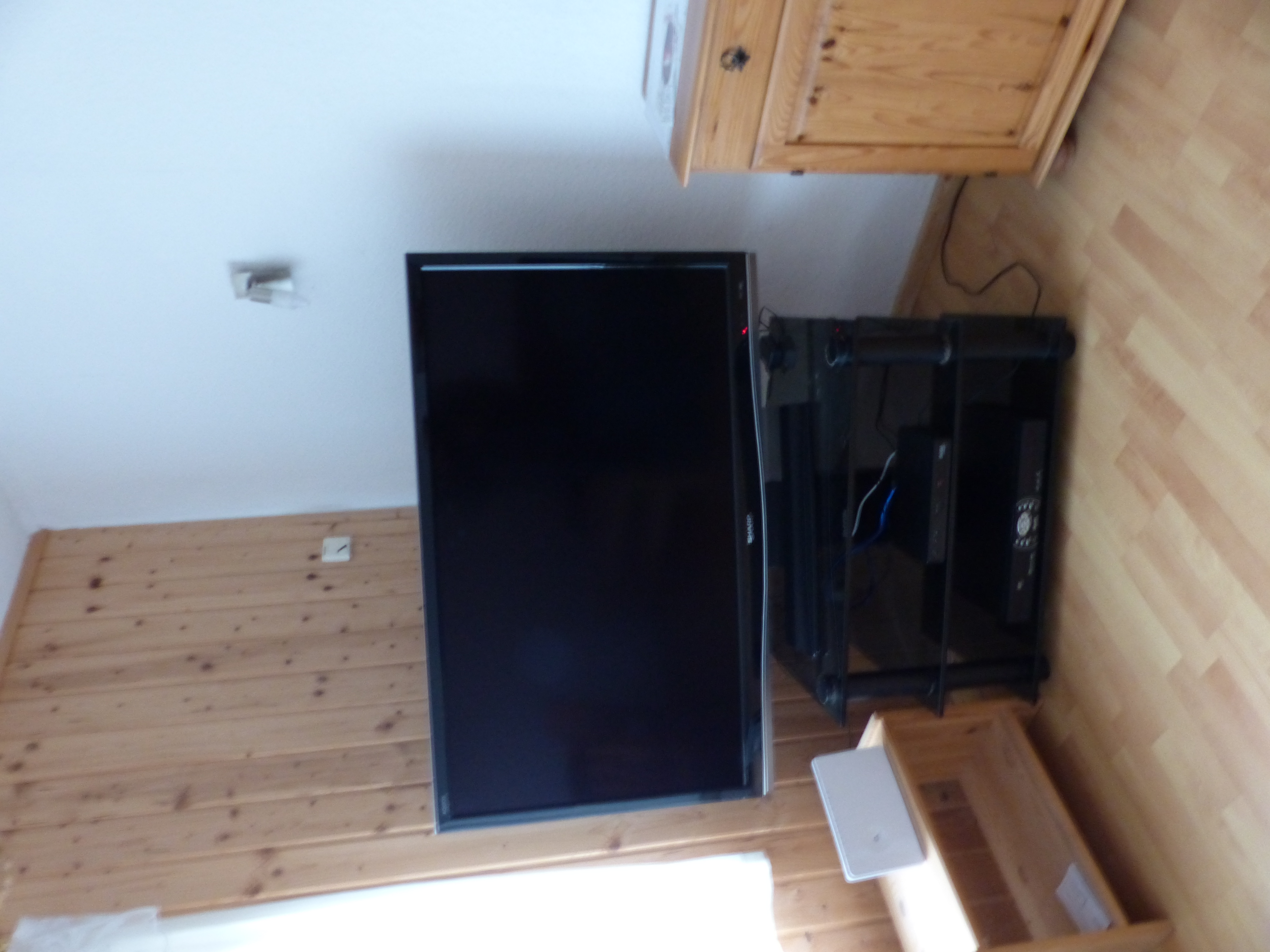 Wohnung gehören ein kl. Zimmer mit Fernseher einem Bett, Bad und sowie ein